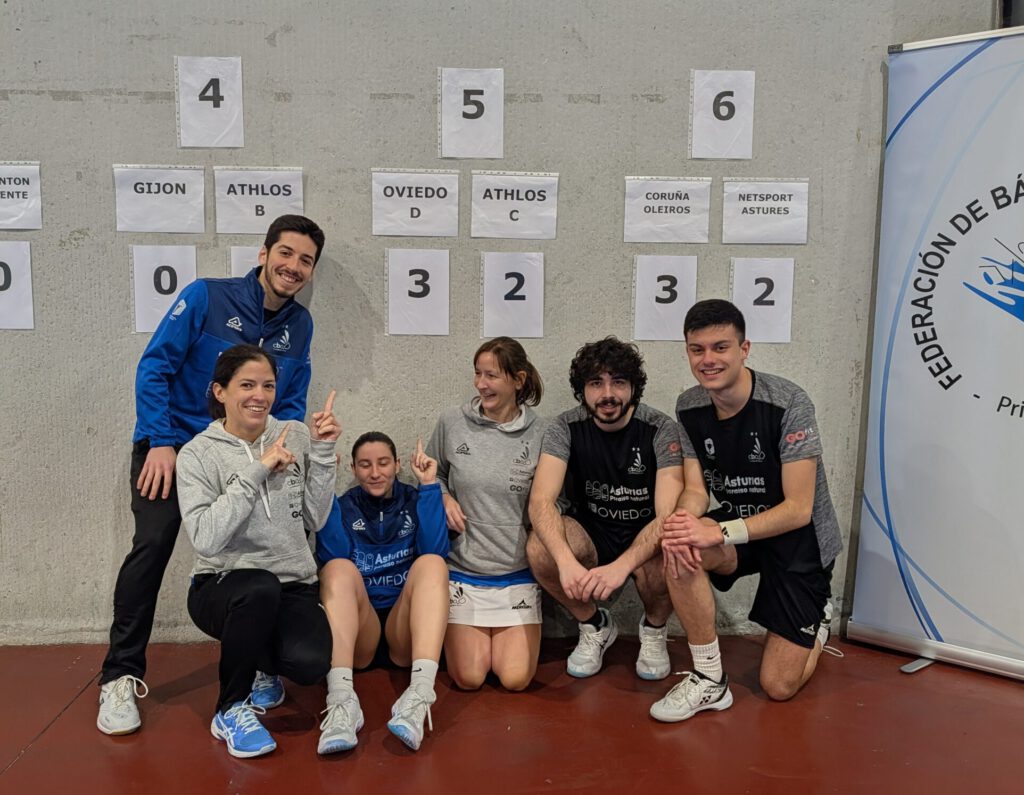 Oviedo C, que inició la jornada como colíder, sumó tres victorias —4-1 ante Bádminton Olimpia, 3-2 frente a Coruña-Oleiros y triunfo ante C.B. Cíes—, pero la derrota por la mínima ante Bodega Anchón Astures lo situó en la segunda posición.